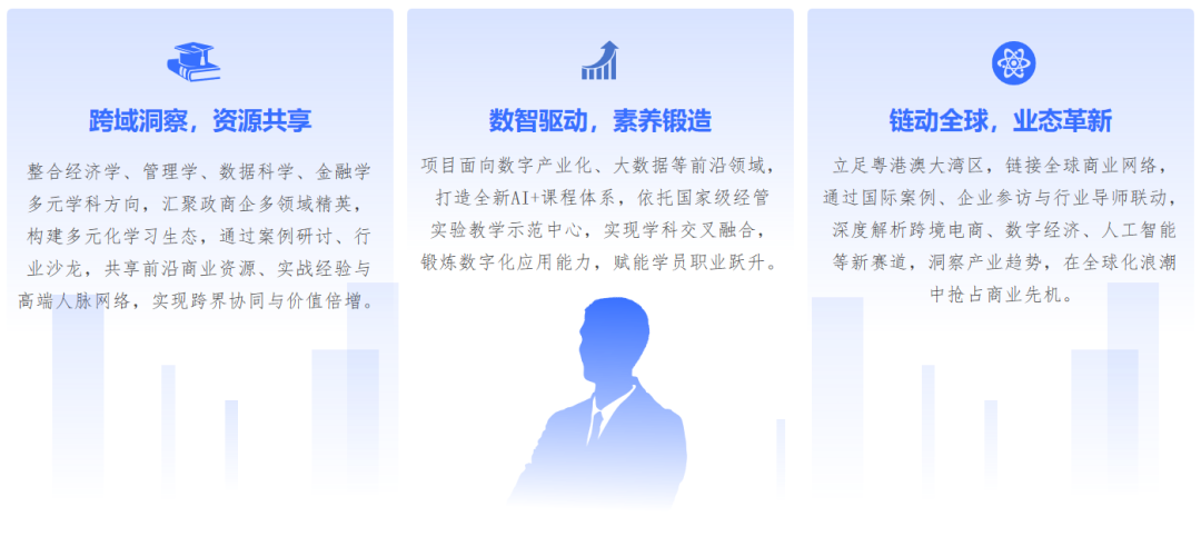 项目拥有一只专业化、高水准、实战型导师团队,高级职称比例高达65%,60%导师具备海外名校研修背景,50%拥有世界500强或行业头部企业高管实战经验,确保教学紧密结合前沿理论与商业实践。项目采用“学术导师+企业导师”双导制,为学员提供学科深耕、职业发展及资源对接的全方位支持,尤其适合职场人士提升行业竞争力、创业者与管理层优化战略决策,以及跨专业进修者构建复合型知识体系,助力学员在金融、数字经济、跨国管理等热门领域实现快速成长。