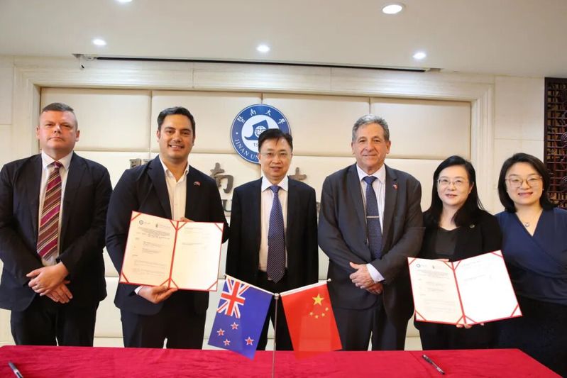 5月27日上午,暨南大学国际商学院与新西兰梅西大学商学院签署商科研究生1+1双学位联合培养协议。