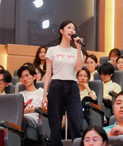 此外,国际商学院教师夏芸、郭津毓,研究生会主席团成员邵诗淇、2023级金融工程张展伟、2025级国际商务专业硕士研究生罗晟合(葡萄牙华侨)和2025级国际商务本科生叶梓榆等6个师生代表共同朗诵《把未来写进今天》,从欢迎新生,到青年责任诠释,再到未来祝福,他们用真挚恳切的话语传递着欢迎与期许,让新生们感受到了国商大家庭的温暖。